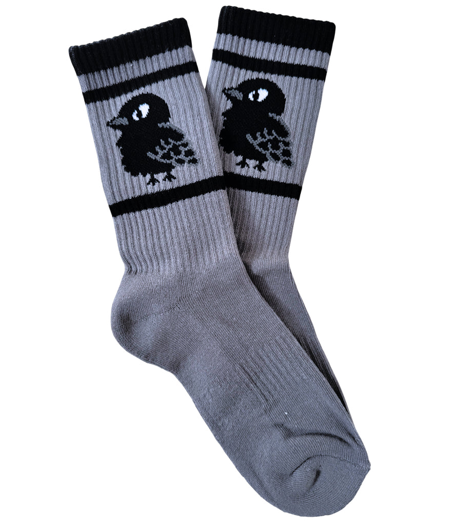 These cute crow athletic style socks come on a black background with white trim! They're women's one size fits all, extra padding for extra comfort, soft, and stretchy! Made with a cotton/spandex blend and are machine washable (cold setting.)