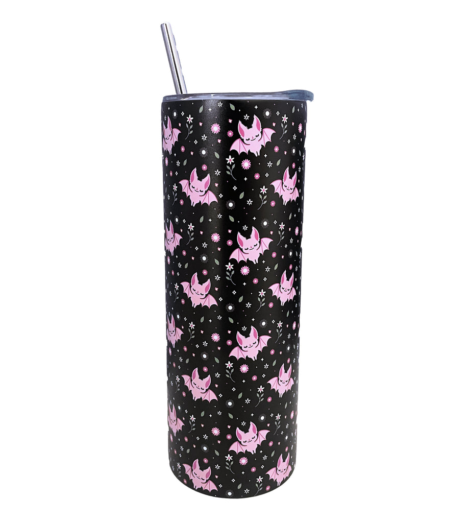 These tumblers are so cute and something you'll use every single day! This tumbler features my floral bats print.