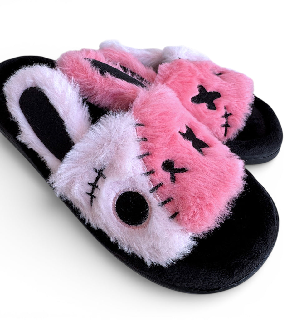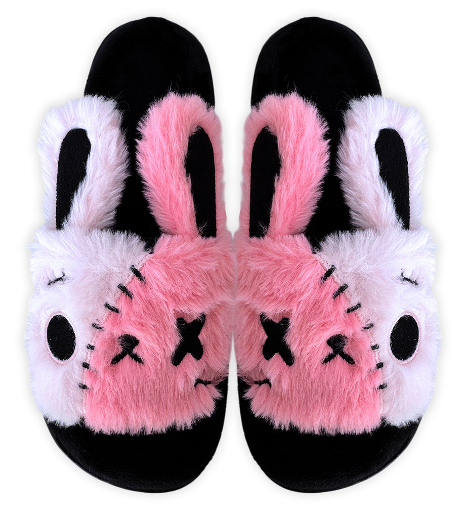 These slippers have been so much fun to bring to life and are based entirely on my own design. They're super plush and comfortable with non-slip rubber soles as pictured. The material is soft plush in two different pinks with professionally embroidered features & stitching making for a very durable slipper. The sizing on these is true to size, I do not recommend sizing up at all unless you're a half size and between two sizes.