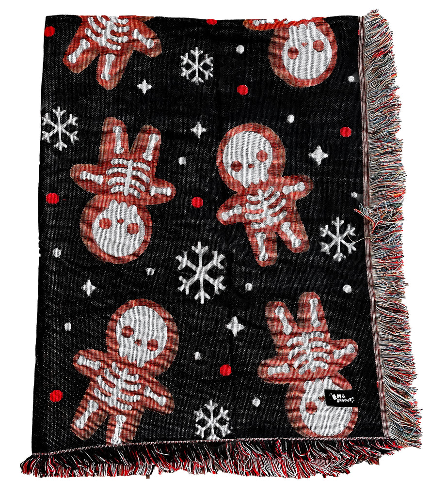 I took my spooky gingerdead man print and had it made into a festive, cute blanket for you! Imagine cuddling into it on your couch while watching a holiday movie or taking it for a spooky picnic in the park! SO FUN.