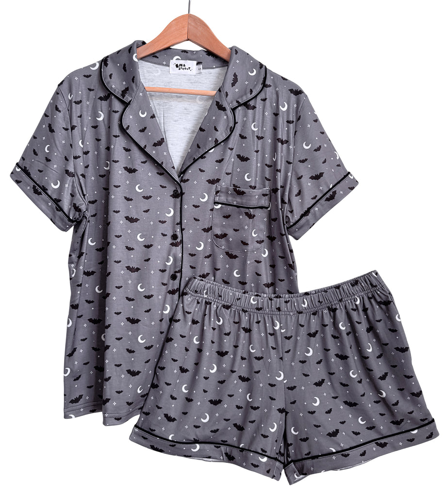 Gray Bats Button Down Pajamas Shorts and Top Set