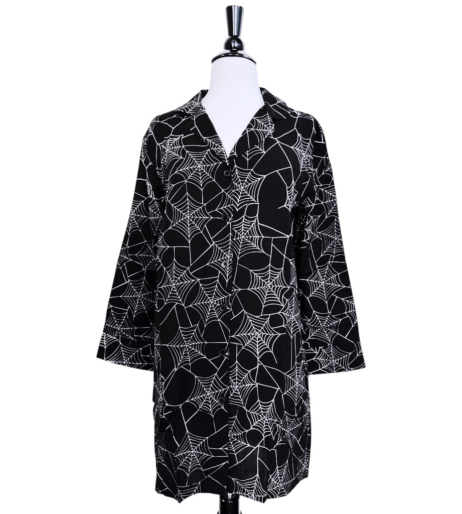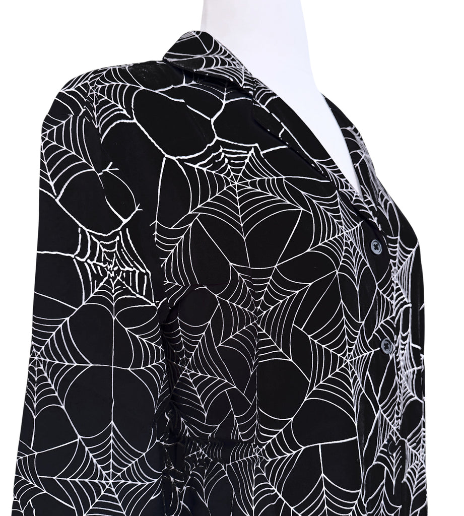 Spiderweb Button Down Pajama Dress - Sizes S-3X