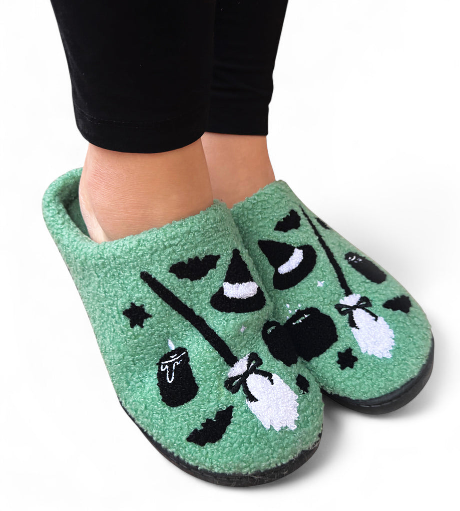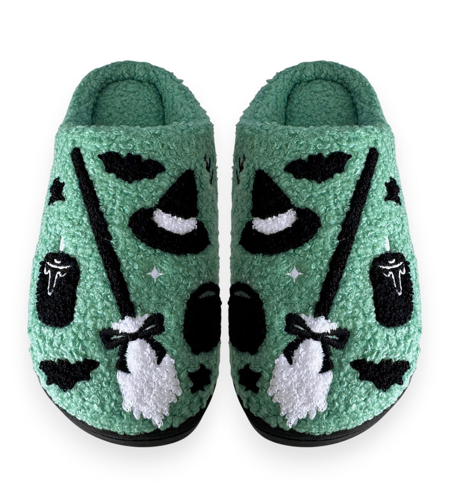 These slippers have been so much fun to bring to life ands are based entirely on my own witchy designs. They are super plush and comfortable with non-slip rubber soles as pictured. The material is a super soft "teddy bear" faux fur and the features are professionally embroidered making for a very durable slipper. The sizing on these is true to size.